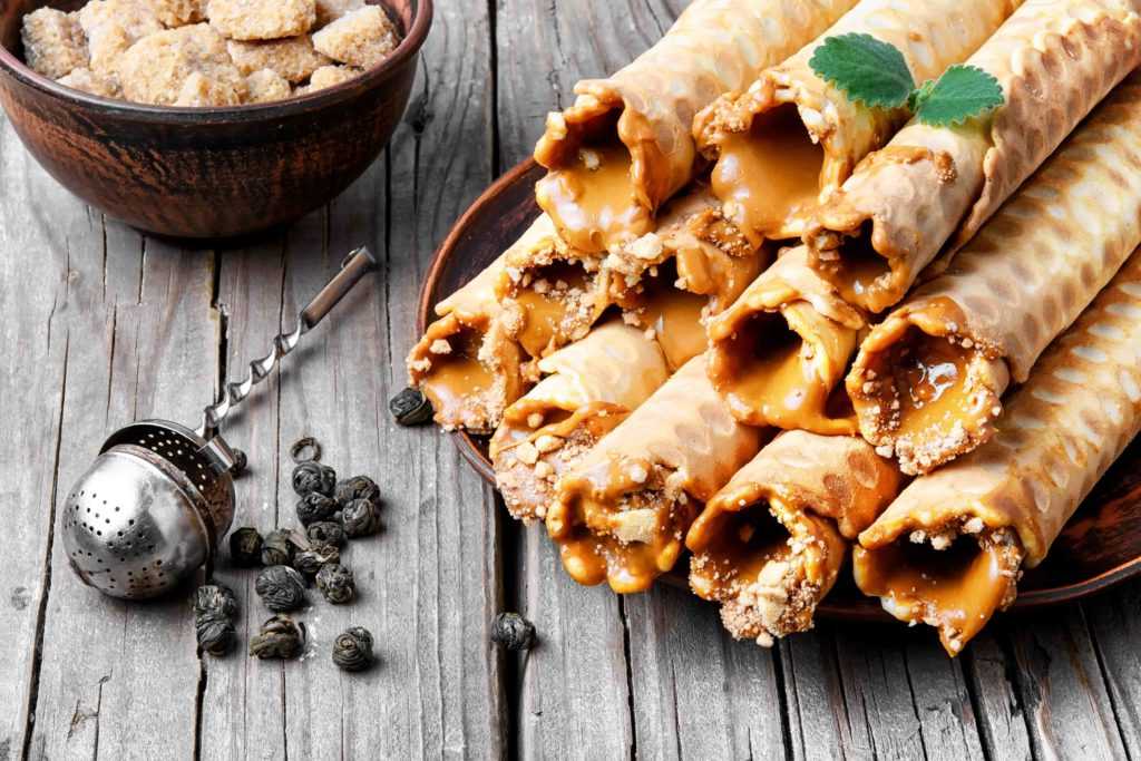 Такие вафли вкусны сами по себе, но сладкоежки могут наполнить трубочки белковым или заварным кремом, густым джемом, или падать к ним сгущённое молоко, мёд, варенье.