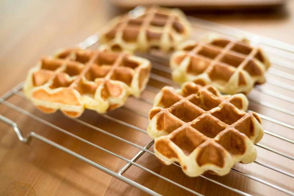 8. Выпекаются вафли, в среднем, две минуты, но всё зависит от мощности вафли электровафельнице, поэтому может потребоваться чуть больше или чуть меньше времени. Готовые вафли приобретают красивый золотистый румяный цвет.