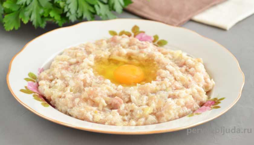 Теперь добавить перец и вбить яйца. Смесь поперчить. Замесить фарш обеими руками. Настоять его в холодильнике.