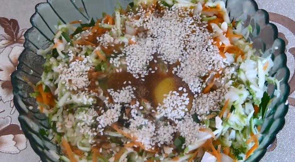 Соединить овощи с мелко нарубленными зубчиками чеснока и зеленью. Вбить яйцо, насыпать разрыхлитель и кунжут, предварительно обжаренный на сухой сковороде.