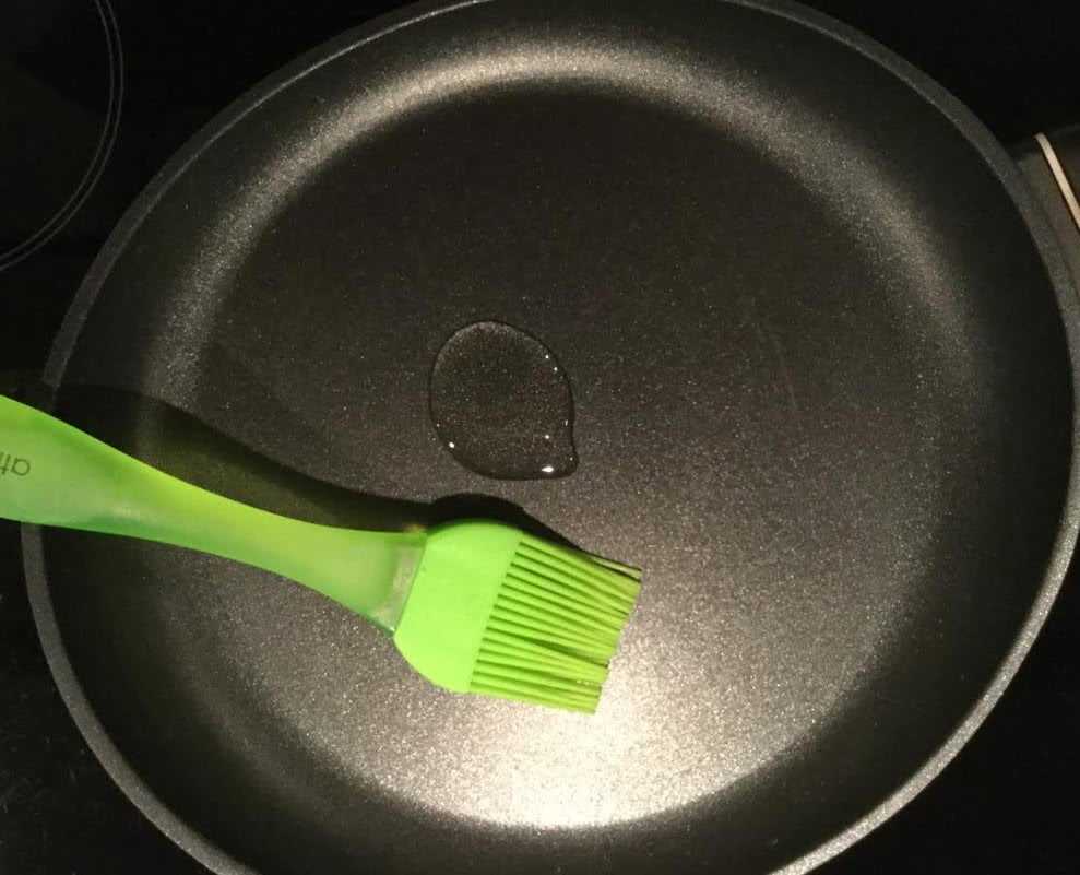 - Разогрейте сковороду с антипригарным покрытием на среднем огне. Смажьте сковороду растительным маслом.