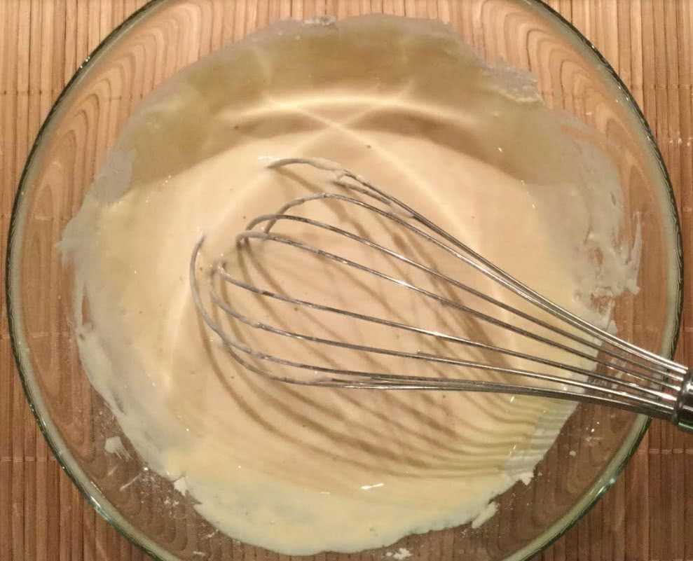 При помощи миксера или блендера смешайте тесто. Ручное замешивание потребует у вас больше усилий, потому что нужно сделать тесто максимально гладким, без комочков.