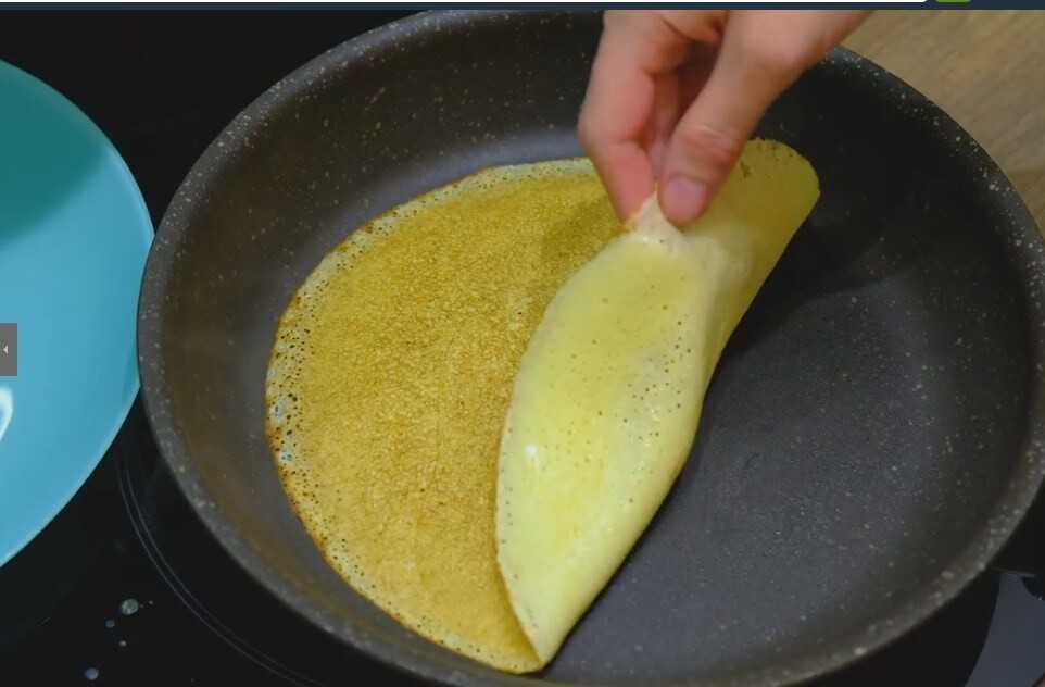 Подрумяненный на одной стороне блинчик, мы переворачиваем на другую.