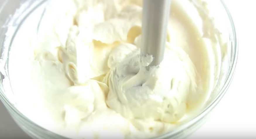 7. Соединить сливочный сыр и взбитые сливки с сахаром, тщательно перемешать до однородной массы, чтобы не было комочков. Можно это сделать миксером.