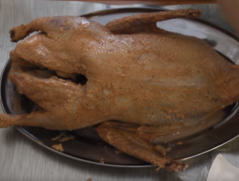 4. Достаем гуся, даем стечь маринаду и натираем сухими специями, перчиком, смесью для птицы или любыми другими.