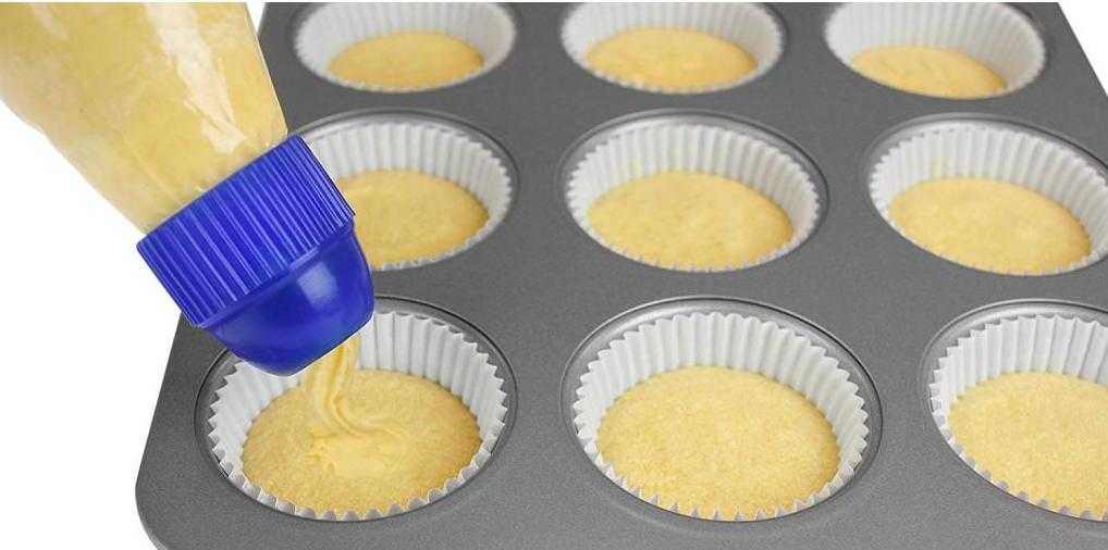 Формочки для кексов смазываем растительным маслом и наполняем тестом.