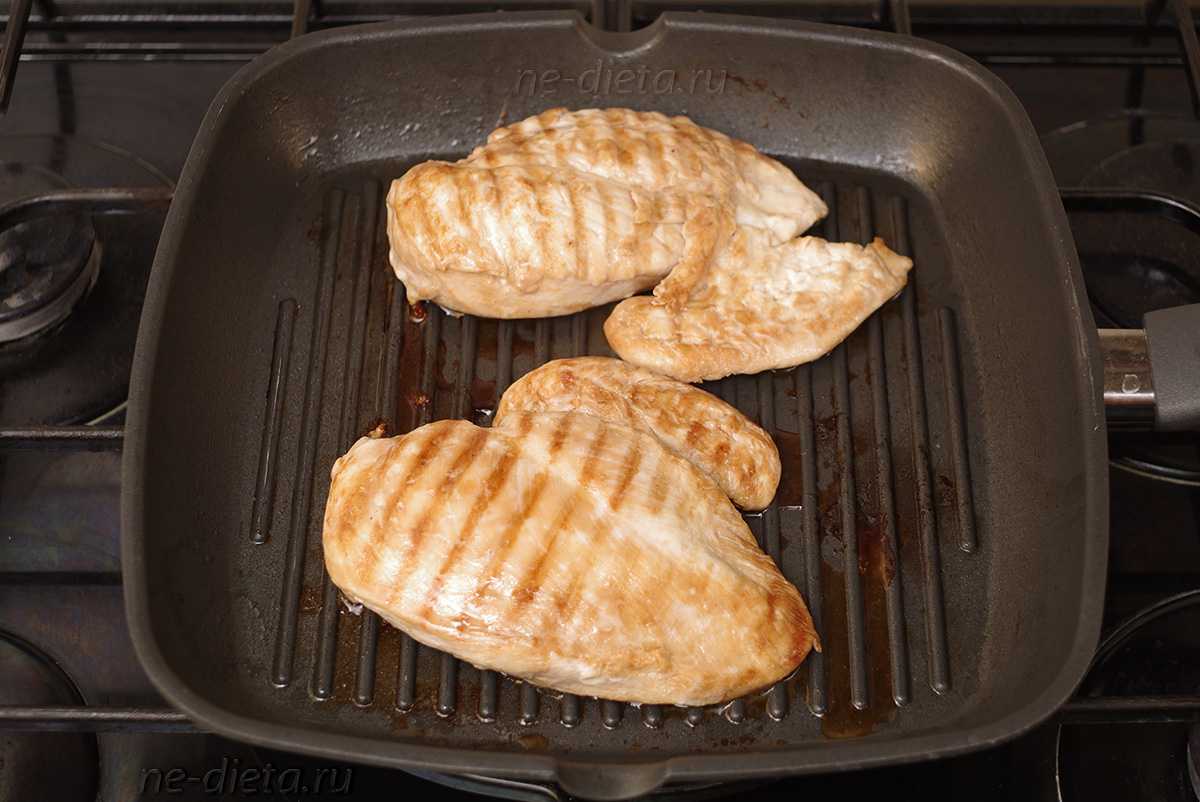 Совет! Если у вас нет сковороды-гриль, то курицу можно обжарить и на обычной сковородке, просто в этом случае она впитает в себя больше жира, что увеличит ее калорийность. Тем не менее, эта методика позволяет получить куриное филе с аппетитной вкуснейшей корочкой и очень нежным и сочным мясом внутри.