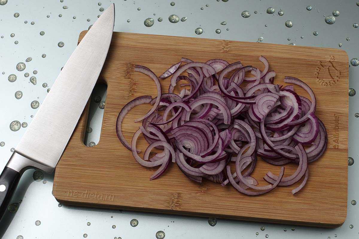 Репчатый лук порезать полукольцами или еще мельче, если луковица слишком большая.