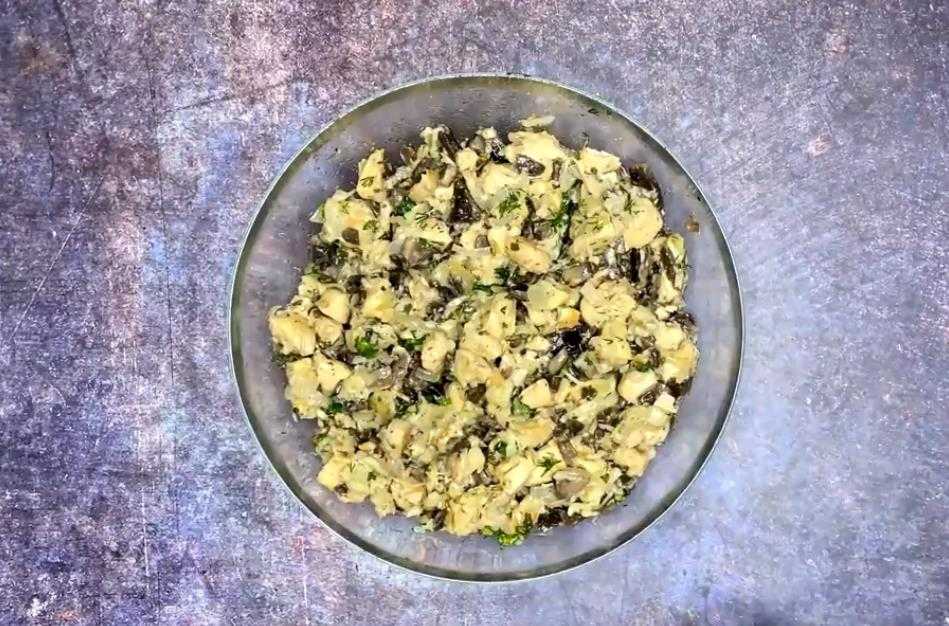 Обратите внимание, что соль в начинку не добавляется, так как в рецепте используется соевый соус, а он достаточно соленый. Оставляем миску с готовой начинкой на полчаса при комнатной температуре на 30 минут
