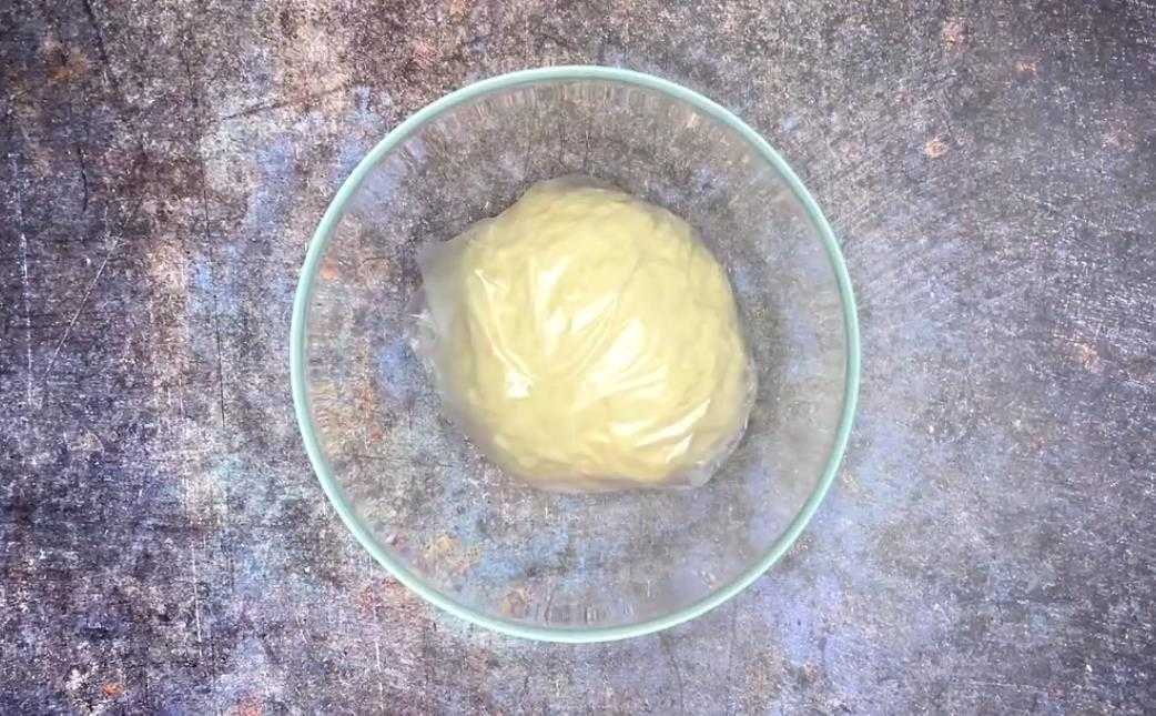 Муку просеять с солью, смешать с теплой водой. Вымесить тесто до мягкости, скатать в колобок, накрыть пищевой пленкой и поместить в холодильник на 20 минут.