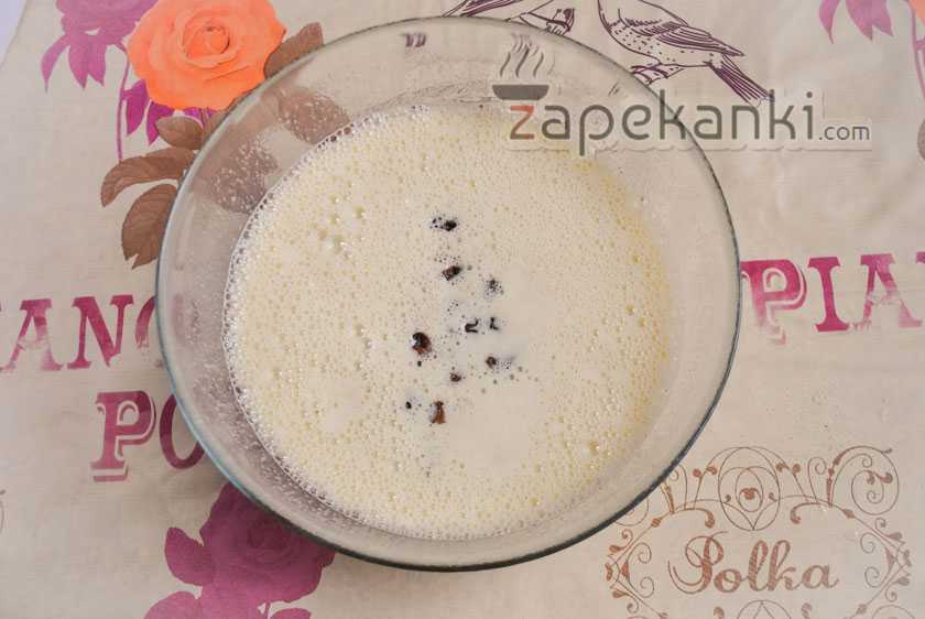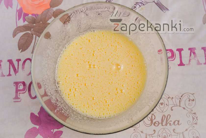 - Яйца тщательно разотрите с сахарным песком. Затем влейте к ним тёплое молоко.