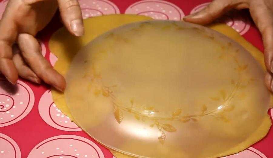 Скатать колбасу, разделить на 8 одинаковых частей. Разогреть духовой шкаф до 180 градусов, раскатать каждый шар в пласт и вырезать круг при помощи подходящей миски.