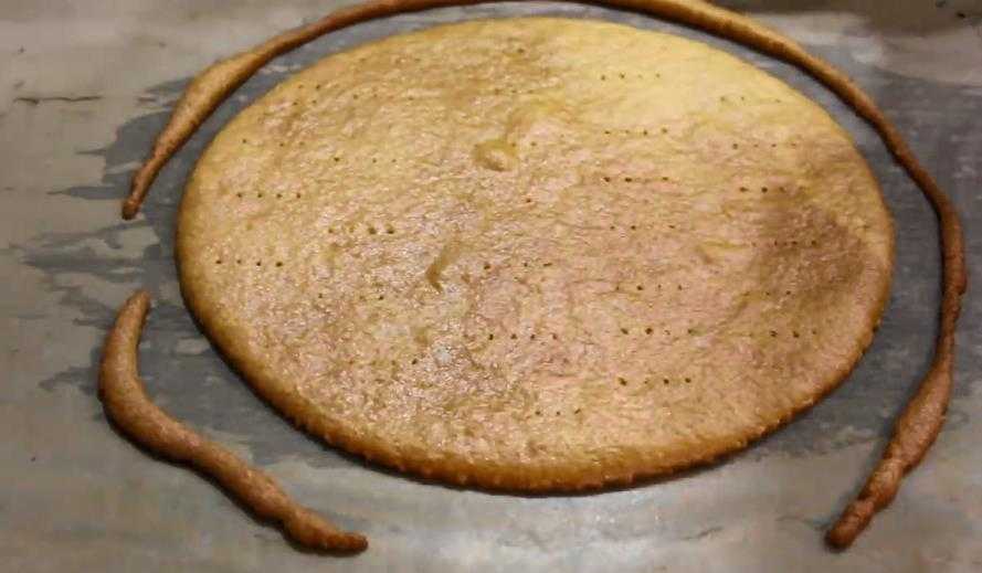 - Разогрейте духовку до 180 градусов. Выпекать каждый корж нужно 5-7 минут до чуть золотистого цвета.