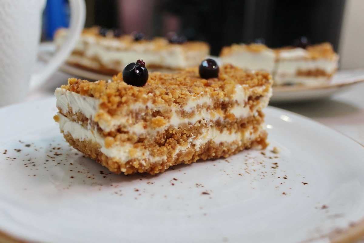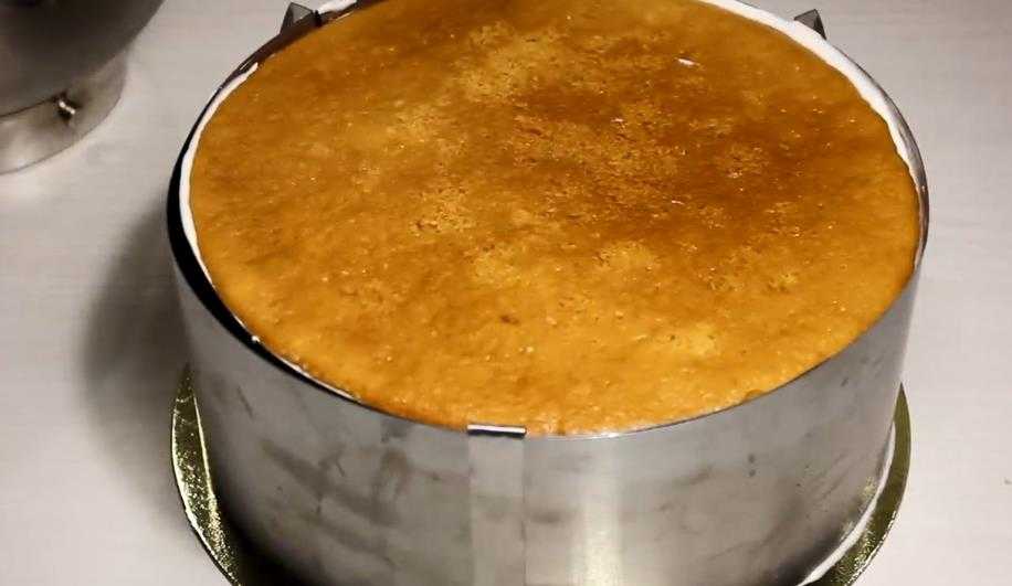 - Заготовку требуется остудить и разрезать так, чтобы получилось три коржа.