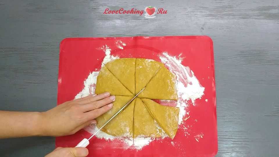 - Тесто необходимо подержать на холоде полчаса, затем разделить на 10 частей.