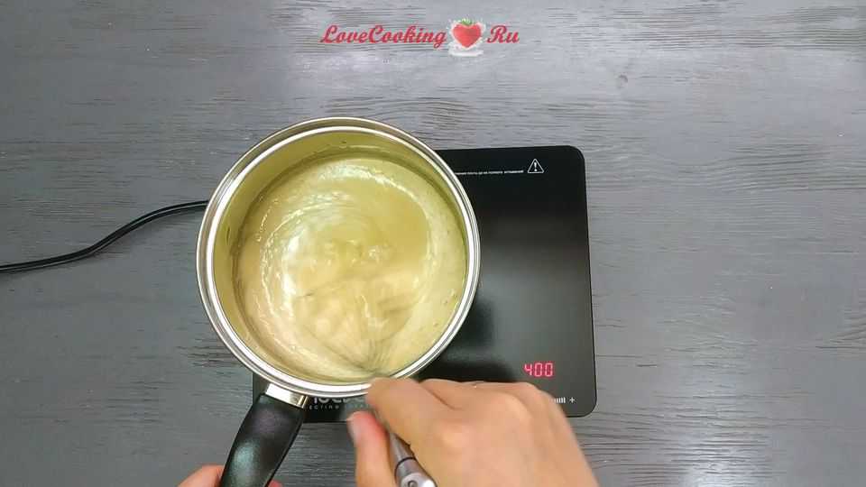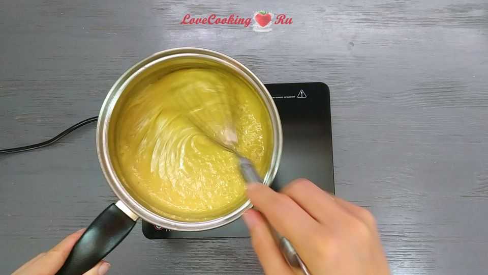 Нагреваем эту смесь на медленном огне, постоянно помешивая.