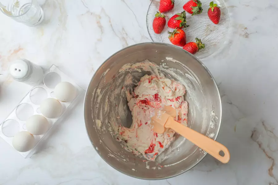 - Добавляем в начинку нарезанные ягоды клубники, свежую малину и голубику.