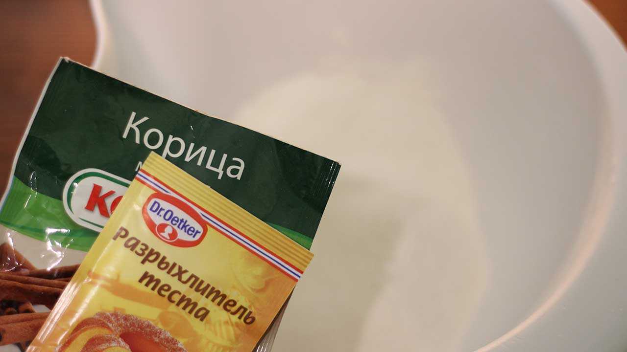- Соединить в общей емкости: разрыхлитель, корицу, мускат (имбирь), муку.