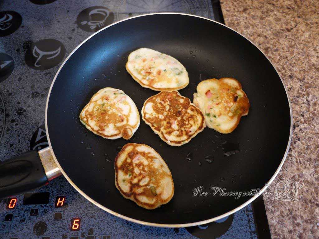 - Готовьте на сковороде, как обычные оладьи, около 2 минут.