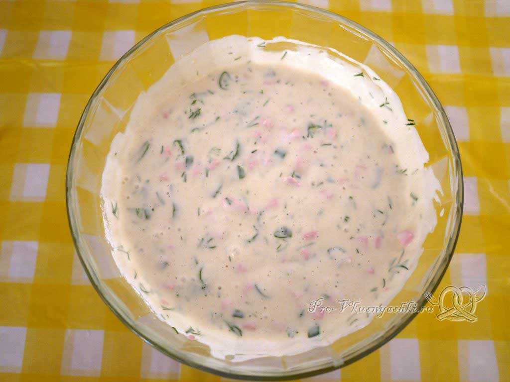 Перемешиваем содержимое посуды до однородного состояния, консистенции жидкой сметаны.