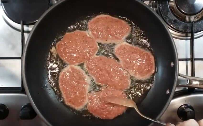 4. Разогрейте сковороду, налейте немного растительного масла. Ложкой выкладывайте массу на сковороду, жарьте с обеих сторон до коричневого цвета.