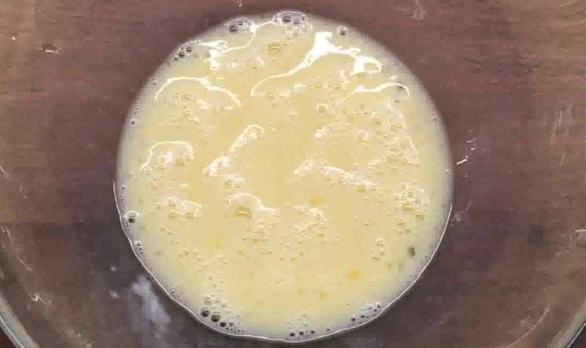 - Стакан молока нагревает до температуры 30 градусов, растворяют в нем дрожжи, ждут около 10 минут, пока не появится пена.