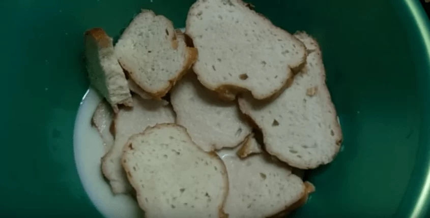 1. Ломтики батона заливаем молоком и оставляем их на 15 минут пропитаться.