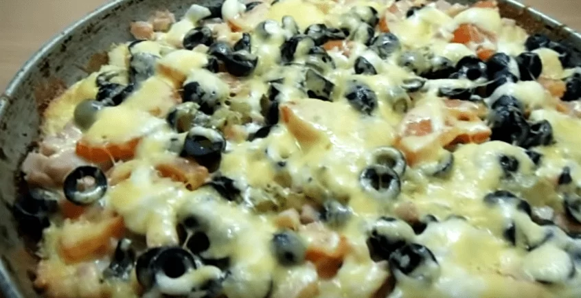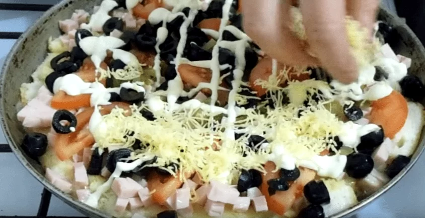 Пицца на сковороде со сметаной за 10 минут