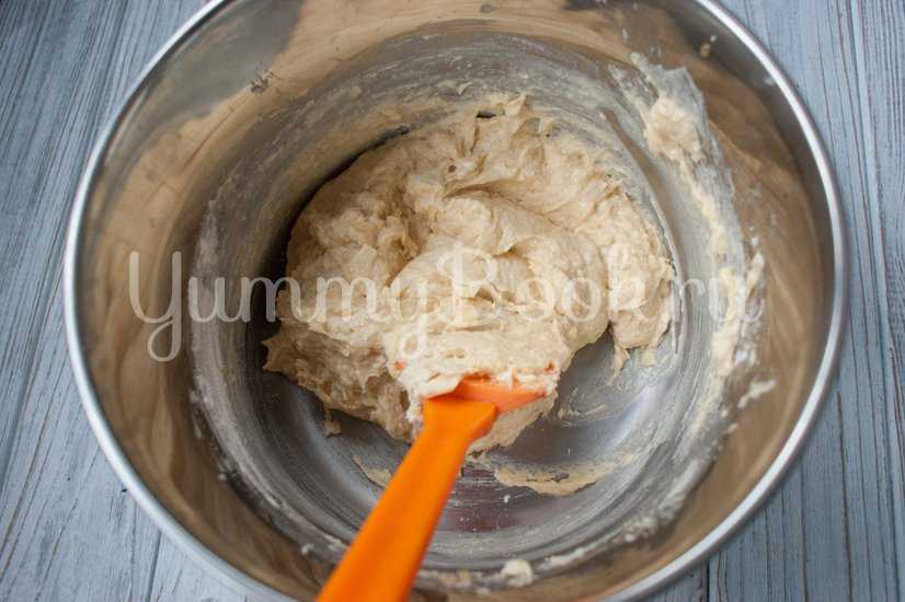 Затем добавляем оставшуюся муку (65 гр.) и хорошо перемешиваем.