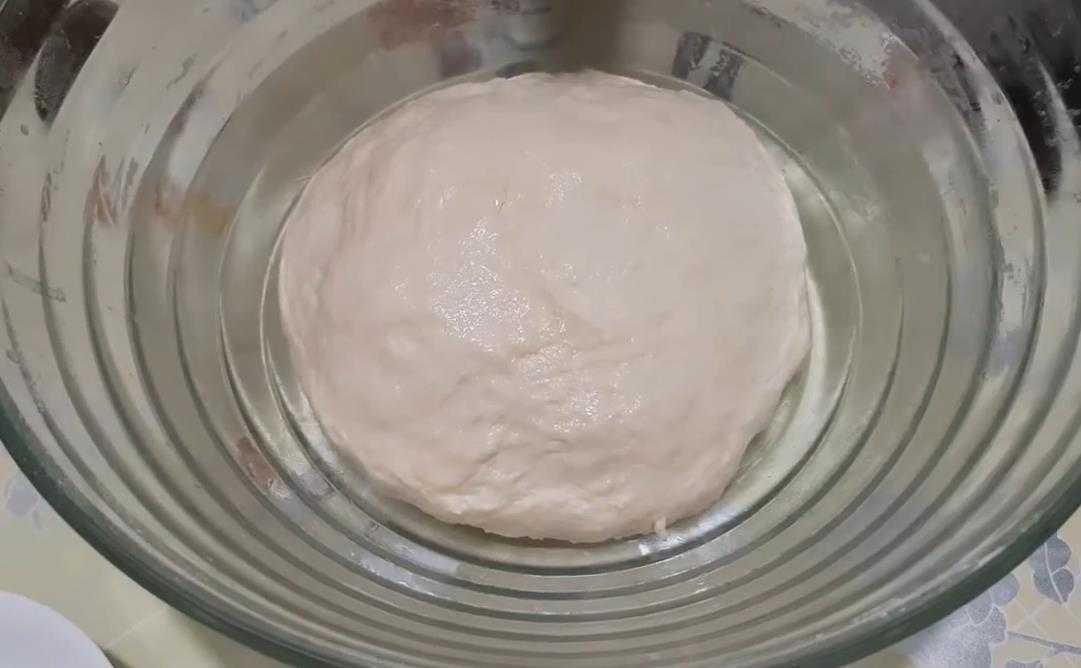 Получится мягкое, однородное тесто. Его нужно хорошо вымесить руками, тогда клейковина начнет «работать», и масса перестанет липнуть. Замешанное тесто переложить снова в миску, прикрыть ее пленкой из пищевого полиэтилена или чистым кухонным полотенцем. Оставить в тепле для подъема примерно на 60 минут.