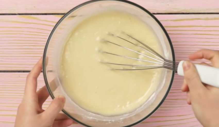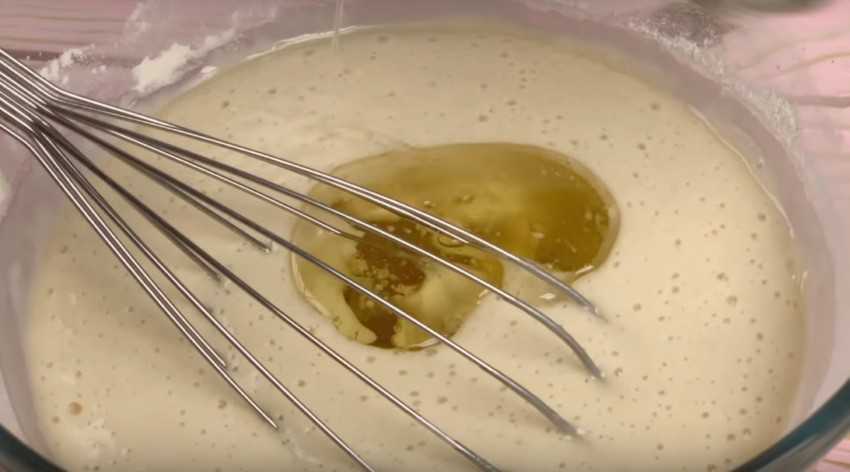 - Тесто выходит без комочков: гладкое и слегка тягучее. Его можно замешивать ложкой или обычным венчиком.