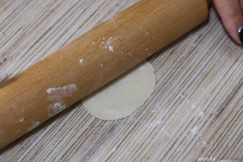4. Ну, а после с увлечением и удовольствием разделывайте его, скатайте колбаску, разделите ее на кусочки, скалкой раскатайте в кружок, и лепите из полученных заготовок пельмени.