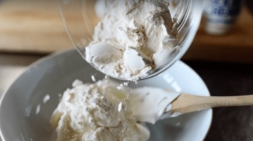 - Получившееся тесто по консистенции должно напоминать нежирную сметану.