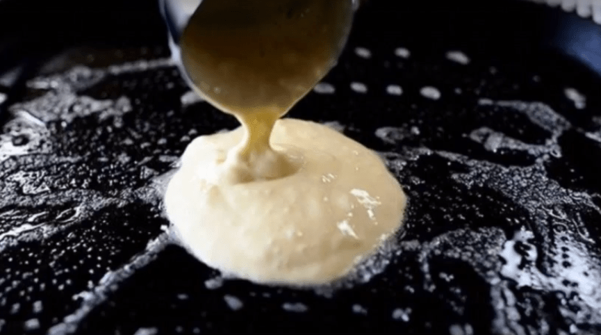 7. Тесто выкладываем столовой ложкой на разогретую сковороду с растительным маслом.