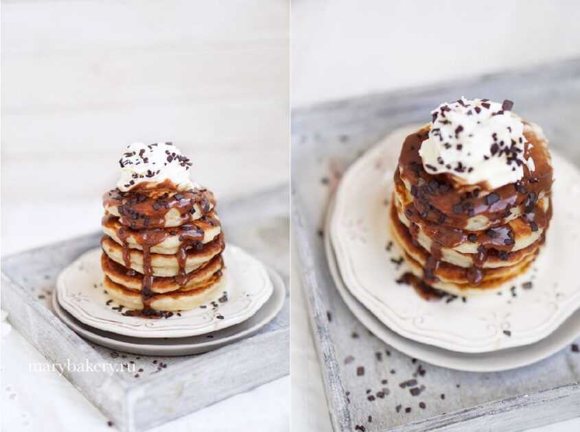 Оладьи еще горячими можно смазать сливочным маслом или подавать с вареньем, сгущенкой, шоколадом – что вам больше нравится.