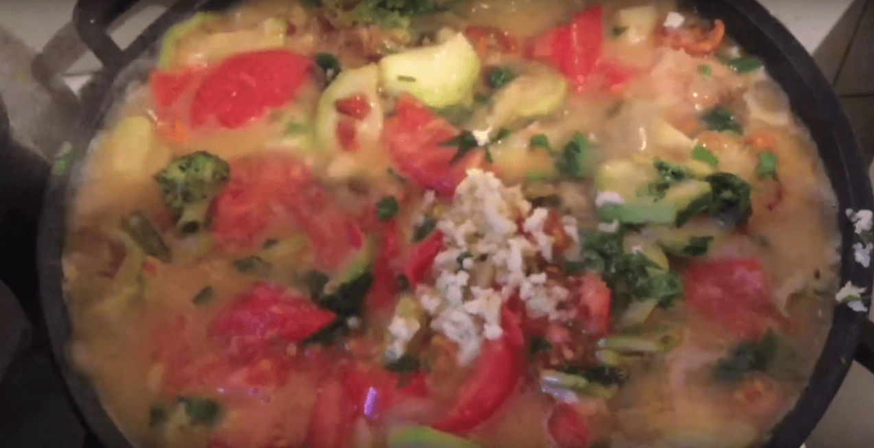 - За 10 минут до готовности в угощение засыпаются ломтики томатов, очищенных от кожицы.