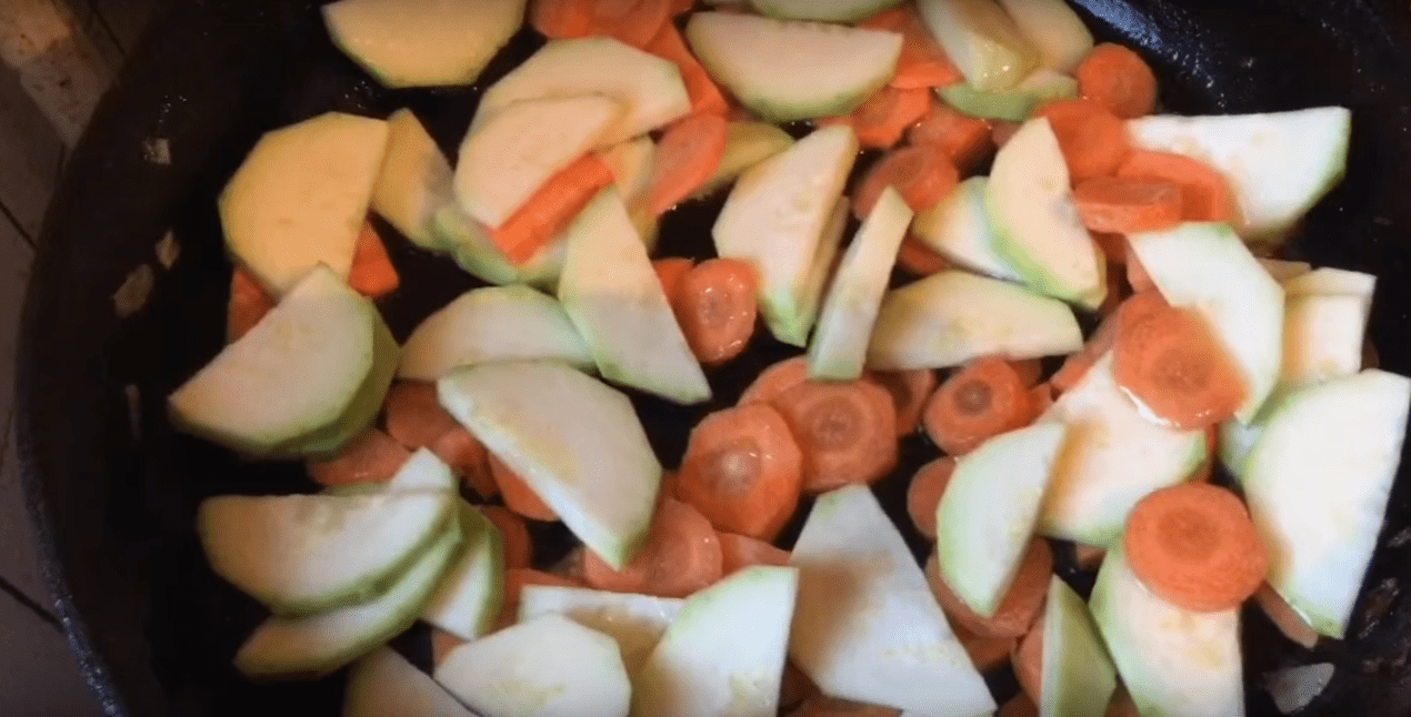 В это время можно успеть слегка прожарить морковь и кабачок.