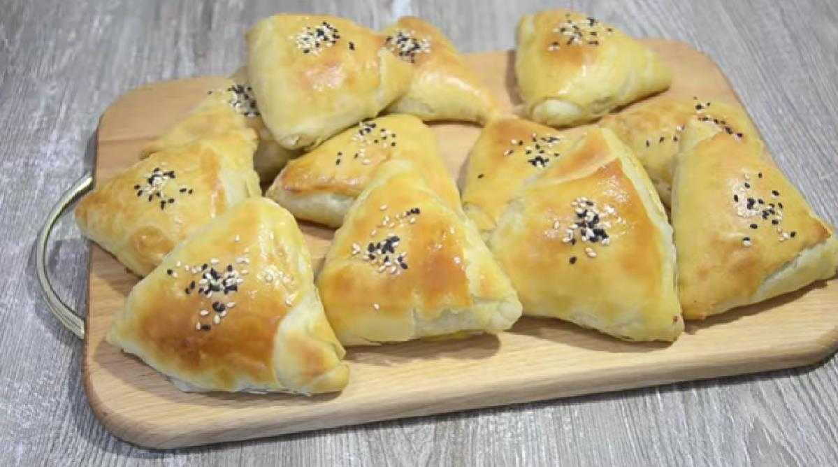 Самса с мясным фаршем из слоеного теста (пошаговый рецепт)