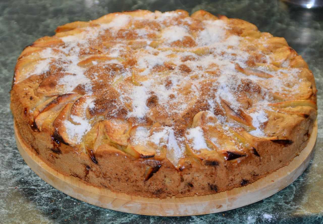 Шаг 10. Когда пирог будет полностью готов, аккуратно достаньте форму из духовки и дайте шарлотке немного остыть. Затем извлеките пирог из формы и разрежьте на порционные куски.