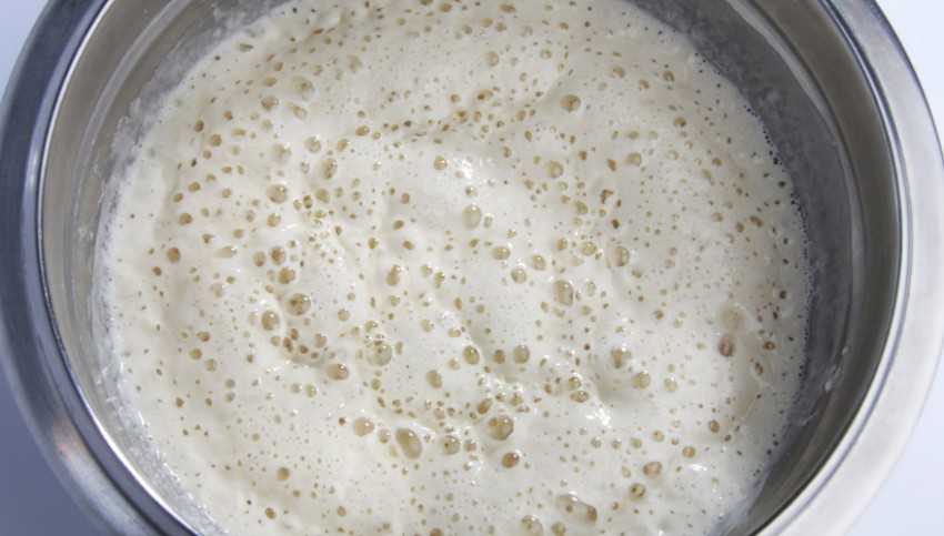 - Положить в майонез разрыхлитель, перемешать и подождать, пока начнется реакция брожения.