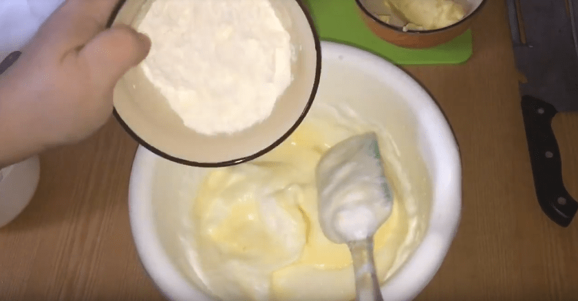 6. Следующим ингредиентом добавляем и размешиваем размягченное сливочное масло.