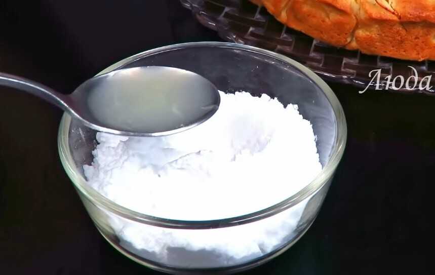 Для глазури понадобится немного сахарной пудры и буквально пара ложек какой-нибудь жидкости (лимонного или апельсинового сока, молока или, на крайний случай, просто воды). В этом рецепте берется лимонный сок, он придает глазури кислинку, которая отлично гармонирует с яблоками.