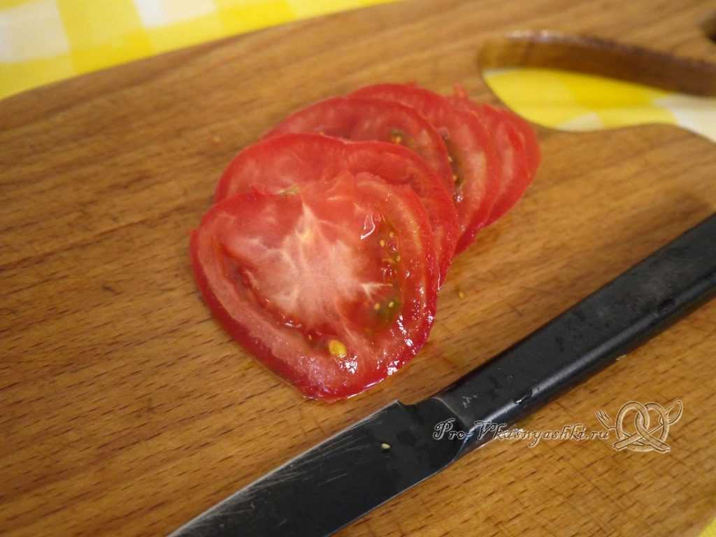 Помидор нарезаем тонкими кружочками.