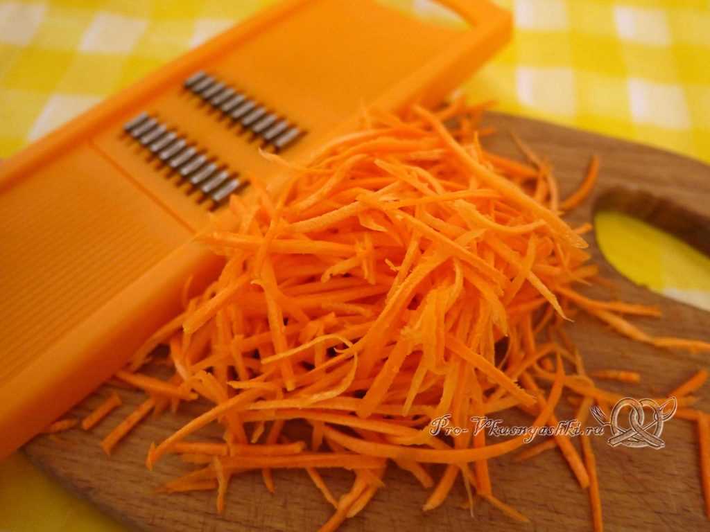 Морковь очищаем и натираем на терке тонкой соломкой.
