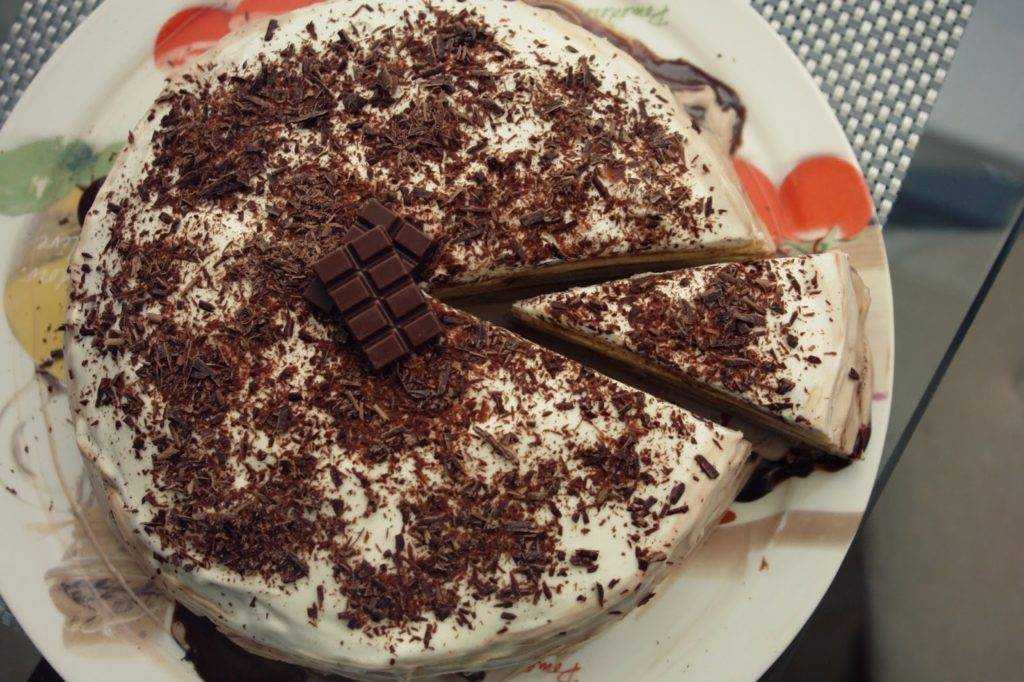 - Пропитывать торт сметанным кремом с добавлением шоколадки лучше всего в холодильнике.