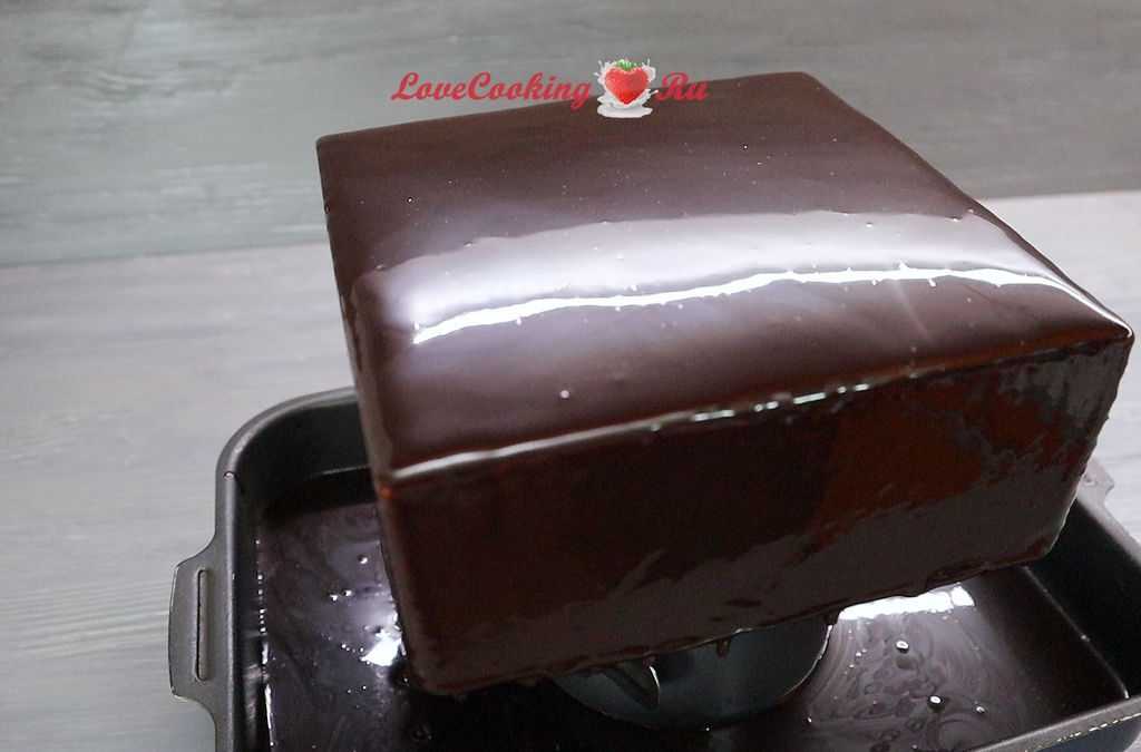 Зеркальная глазурь на тёмном шоколаде без глюкозного сиропа: https://lovecooking.ru/shokoladno-vishnyovyj-mussovyj-tort/
