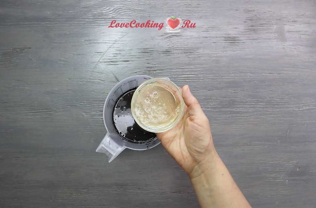 Снимаем с плиты, переливаем в глубокую ёмкость, например, мерный стакан. Даём остыть примерно до 60°С.
