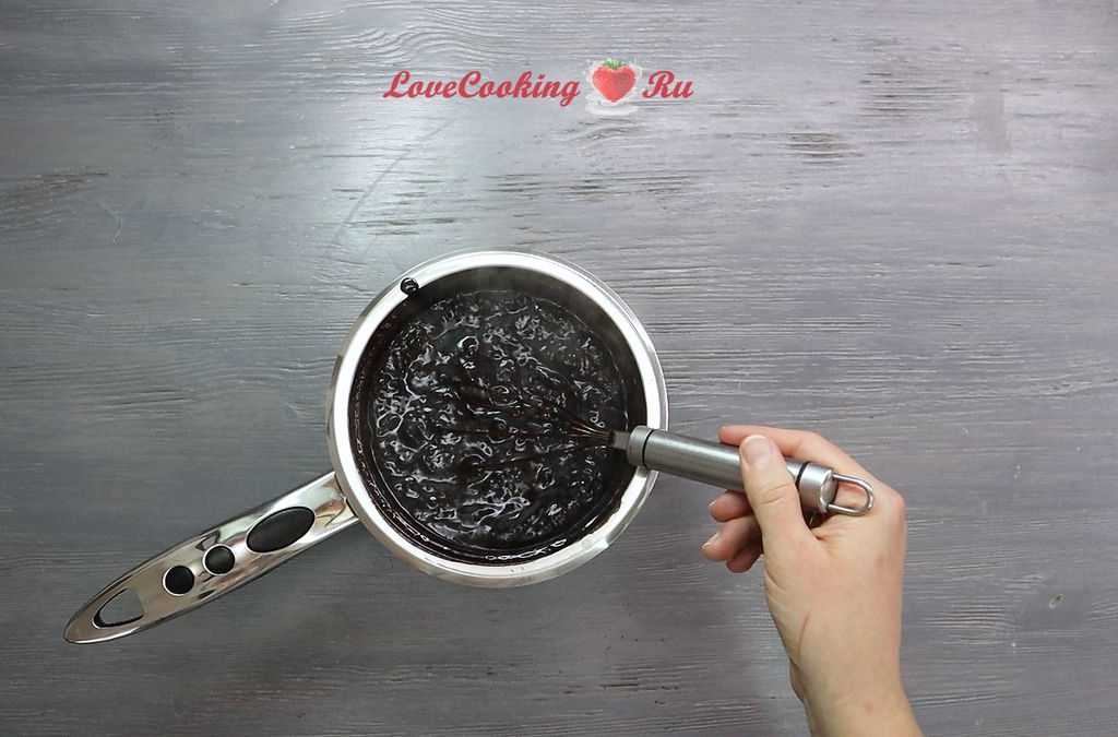 Сразу скажу, что этого количества глазури хватит на два торта, т.е. остаток будет приличный. Но я всегда делаю глазурь с запасом. Особенно, когда торт угловатый, не обтекаемый. Дополнительно нужно проливать углы, чтобы глазурь на них легла.