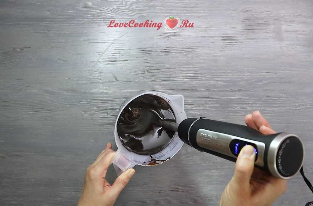 - На паровой бане рекомендуется смешать яичный желток и шоколадные массы. Работать миксером необходимо 2 минуты. С ним легко добиться однородности.