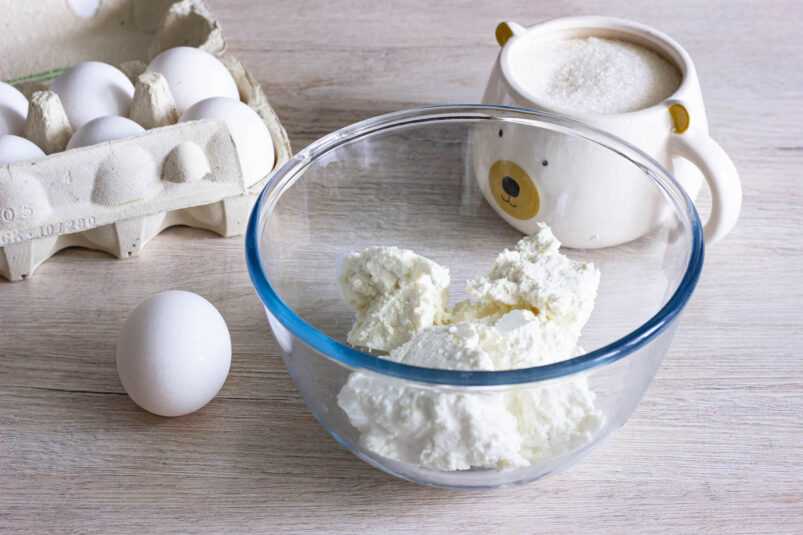 - полкилограмма среднежирного творога любой консистенции;